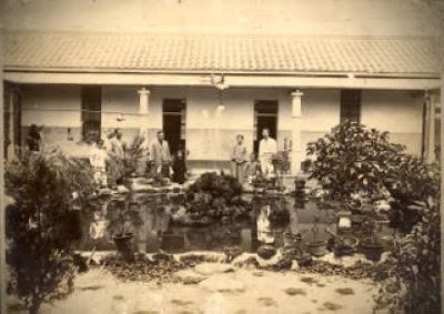 據說祖父平時悠哉悠哉,除了喜愛墨寶詩詞之外,似乎無事可做,花鳥園藝便自然而然地成了他的嗜好。右側院有一小花圃園,類似現代的溫室,裏面掛滿了蘭花,擺架不少盆栽等比較珍貴的植物,曾經是祖父天天修剪澆水照顧欣賞的地方。就這樣,他過得像似古代的員外或者說太平紳士。