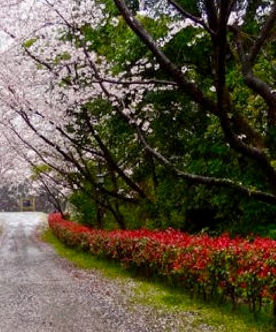 前言:五年前,到日本賞花,散步在熊本城旁的路道上,正胡思亂想之際,突然襲來一陣強風,剎時櫻花亂墜,有如“天花落不盡”,更是一幅“滿天風散花”的景象,花朵飄落遍地,淒美至極!讓我想起日本詩人 YOSHA BUNKO 的一首詩: