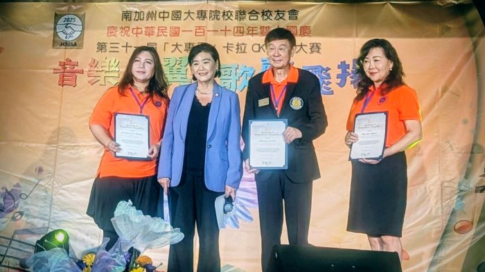 (記者林蓮華/洛杉磯報導)一年一度雙十國慶系列活動陸續展開,由南加州大專院校聯合校友會舉辦的「大專盃」卡拉OK歌唱大賽,於2025年9月20日(周六)在洛僑中心展開全天候的決賽,比賽分為校友組及社會組共8組,主題「音樂為翼、歌聲飛揚」,現場觀眾陶醉不已,歡度一場音樂饗宴。賽程競爭十分激烈,經過9位評審嚴選,最後結果出爐團體組冠軍淡江、亞軍台大、季軍輔仁及東吳;今年歌王由男子組冠軍淡江吳典龍、歌后由女子組冠軍台大唐光蓉雙人榮膺。