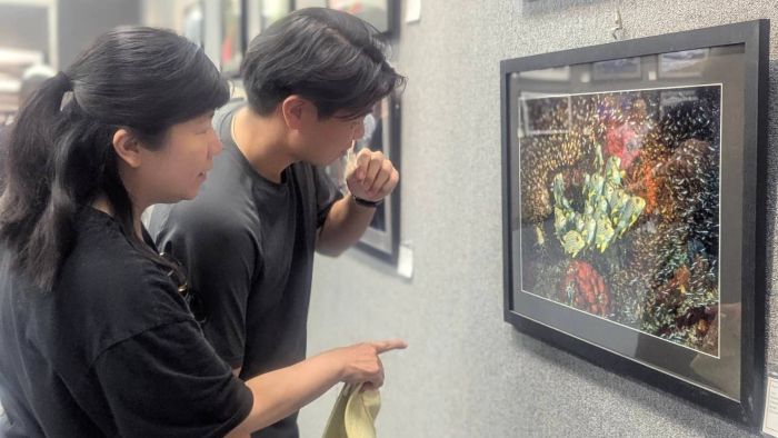 David Somail Chou 的海底潛水風光吸引許多人駐足欣賞。(記者林蓮華攝)
