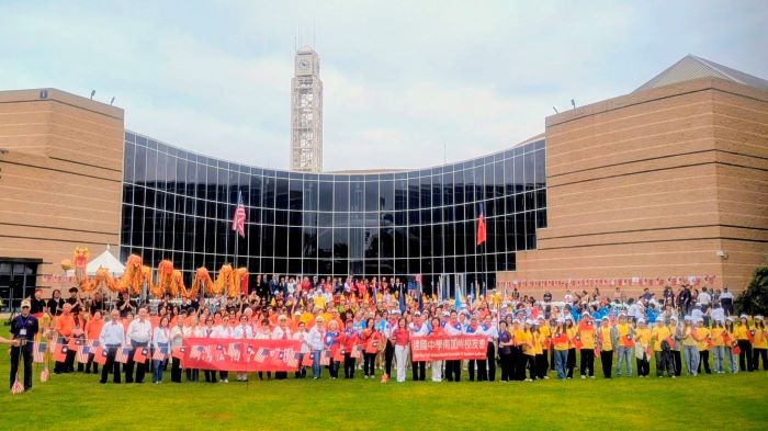 南加州台灣大學校友會會長林永森,同樣對於僑界人士協助尋找場地、出錢出力表達感謝。他提及往年都是在橙縣社區公園舉行,但原本場地因為今年撞期,特别感謝爾灣市議員劉令淳大力幫忙協調安排,才能首度移師至爾灣市府大樓前草坪舉辦,場地更為開闊且莊嚴。在此地升起中華民國國旗與美國國旗,不僅象徵著兩國共同推崇對民主與自由價值的尊重,更彰顯華裔民選官員和大家平日在社區努力耕耘,在主流社會中贏得信任發揮重大影響力。