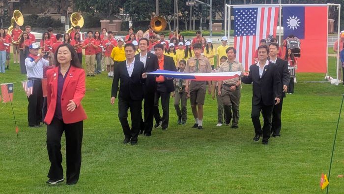 正式的升旗典禮上午9點半開始,由橙縣華人商會會長胡安瀅、北美洲成大校友會基金會董事程東海主持,本次典禮也邀請到多位重要貴賓,有台美兩國官員、及僑界共同主辦及協辦單位代表,體現主流社會與僑界對此活動的重視。