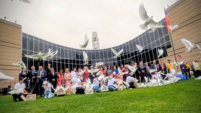 之後並施放象徵和平的白鴿,在大家歡呼讚嘆聲,傳遞對中華民國台灣的支持與祝福,彰顯僑胞在海外飲水思源不忘本的榮耀篇章。