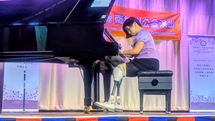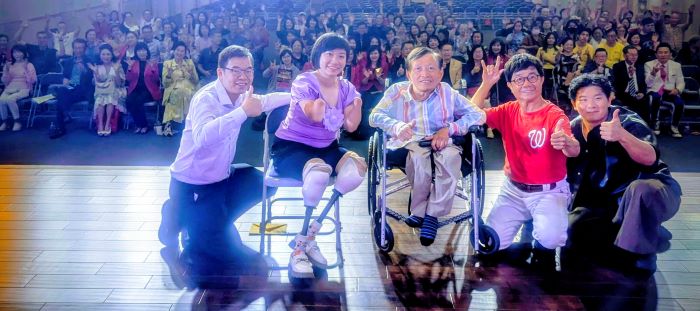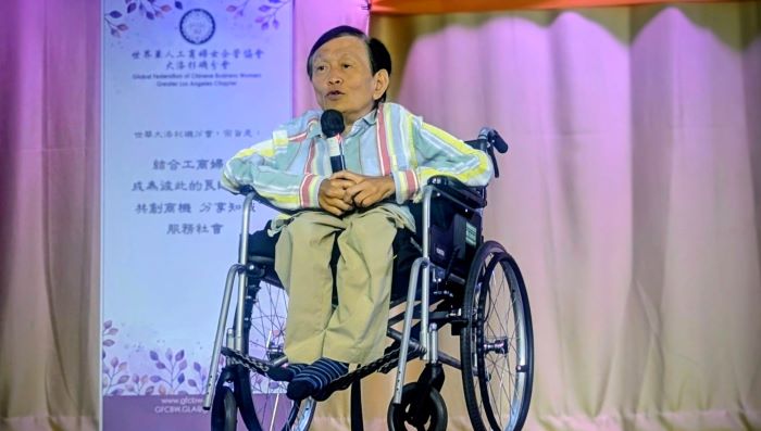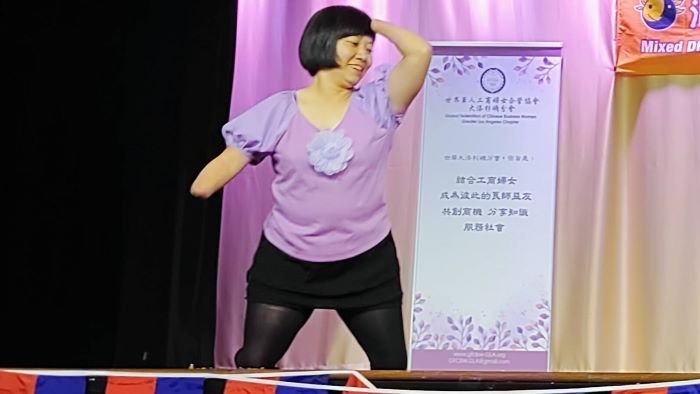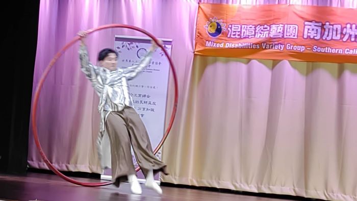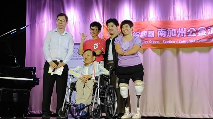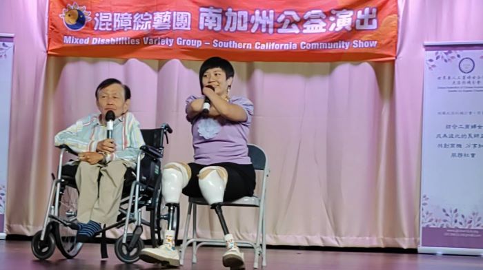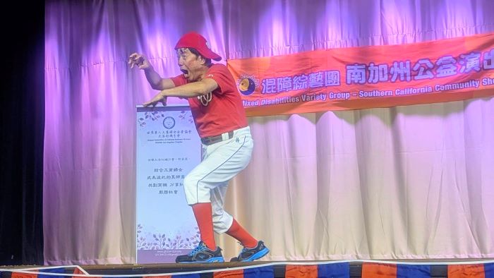 (記者林蓮華/洛杉磯報導)由世界華人工商婦女企管協會大洛杉磯分會於2025年9月28日(周日)在洛僑中心舉辦一場充滿生命力的藝術饗宴,特邀今年成立20週年,來自臺灣以「用生命感動生命」為核心精神的「混障綜藝團」公益演出,這支由身心障礙與非障礙人士共同組成的藝術團隊,在累積超過一千場的國內演出經驗後,終於在2025年9月,夢想成真首次跨越太平洋,展開美國巡迴演出,35位團員因為經費有限,此次只有團長劉銘一行5人克服身體限制出訪,他形容這一趟跨越太平洋的旅程,除了演出,更是一場關於愛與奇蹟的故事,現場民眾也報以熱烈的回應與掌聲。