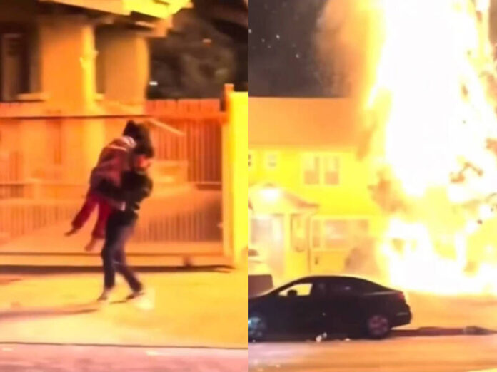 洛杉磯東好萊塢 (East Hollywood)休假的緊急救護員理查德(Richard Recinos),上週在結束家族的感恩節活動,開車返家的途中時,剛好遇上1棟正燃起大火的房屋,他英勇救出7歲的小女孩,順利脫離大火的瞬間,在網路上瘋狂被轉傳。