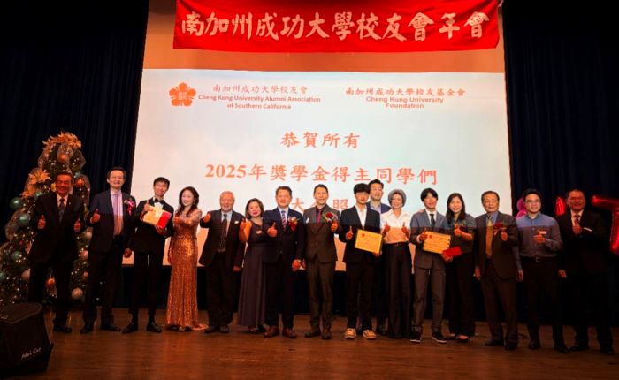 (記者林蓮華/洛杉磯報導)南加州成功大學校友會於2025年12月7日(周日)舉辦第57屆年會,今年主題是「傳承五七、輝耀洛城」,葉旭旻會長進行2025-2026理事交接,並交棒2026年會長,由年輕世代徐詩涵肩負,由於該會十分重視培育人才,之後重頭大戲是由南加州成功大學校友會基金會(CKUF)董事長交接,董事長葉俊麟交棒給蔡瀚寬並頒發三項獎學金,包括「星辰學者獎學金計畫」得主莊冠育、「大學學術及領導才能獎學金」得主鄭鈞媛(Tiffany Cheng)、以及「高中學術獎學金」得主施宇恆(Aiden Shih)、Beckett Cheng、葉品緯(Ryan Yeh)給校友優秀子女。