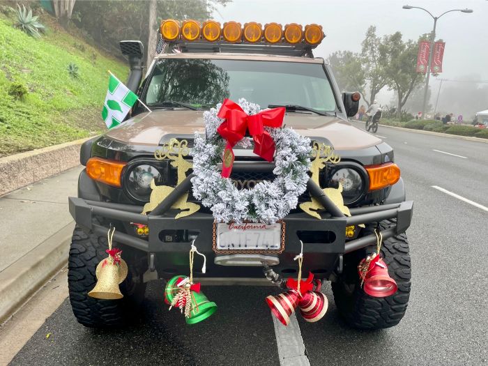 充滿聖誕氛圍吉普車壯大遊行隊伍陣容。(洪家棟提供)