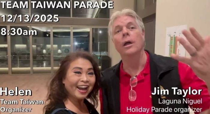 (記者林蓮華/洛杉磯報導)值此聖誕佳節前夕,南加州知名的年度盛事「拉古納尼格聖誕遊行」(Laguna Niguel Holiday Parade)於2025年12月13日再度在橙縣拉古納尼格市隆重登場。台美人不缺席,第六度挺進主流社區,再次組隊以「TEAM TAIWAN」名義的强大陣容,參加這場南加州歲末盛事,並以雪人花車與首度現身的「台灣黑熊」玩偶大受歡迎,主持人在隊伍經過指揮台及主席台,三度大力介紹台灣特色,讓在場來自各族裔的圍觀人士,進一步認識民主台灣文化軟實力。