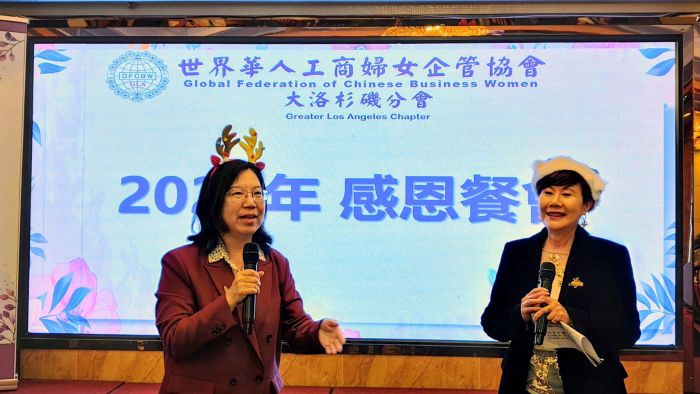 (記者林蓮華/洛杉磯報導)隨著歲末鐘聲敲響,世華洛杉磯分會於 2025 年12月14日在南加州盛大舉辦「2025 年度聖誕聯歡晚會」,逾百位商界精英及會員姊妹齊聚一堂,在充滿節慶氣氛的熱鬧氛圍中,回顧過去一年的豐碩成果,晚會核心焦點在於會長劉煥君宣佈薛麗華第一副會長榮任明年的候任會長,共同展望充滿希望的 2026 年。
