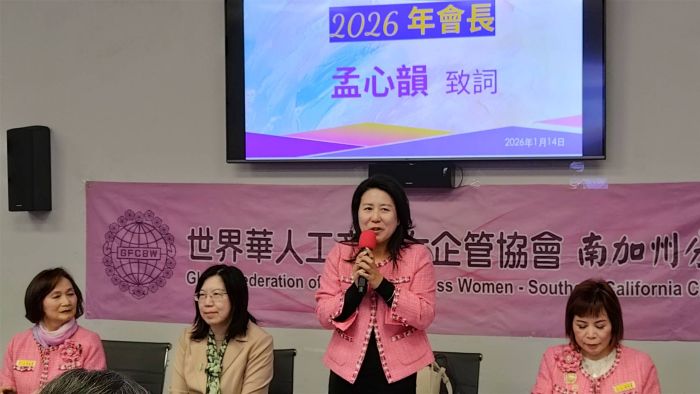 (記者林蓮華/洛杉磯報導) 世華南加州分會(GFCBW-SCC)於2026年1月14日(週三)在洛僑中心正式啟動新篇章,2026年新任會長孟心韻以「心聚世華、韻動共行」作為年度主軸,介紹團隊名單,並且宣佈第九届「金冠獎」選拔即日起開放報名至1月26日截止,同時還報告未來一年計劃,宣佈將於2026年2月28日(週六)在聖蓋博喜來登大飯店(Sheraton LA San Gabriel )舉辦「第35週年慶暨會長交接典禮」進行第 27、28 屆會長交接儀式,並且揭曉2026年「金冠獎」得主,象徵世華精神的薪火相傳。