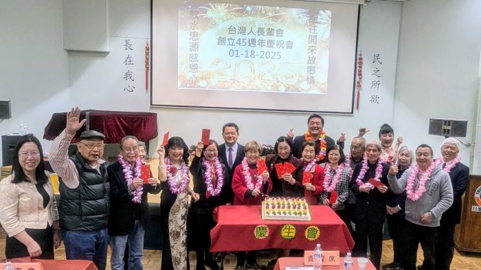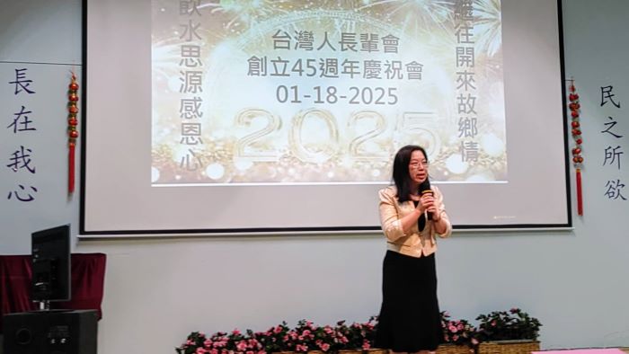 (記者林蓮華/洛杉磯報導)TASA南加州台灣人長輩會在2025年1月18日(周六)於大洛杉磯台灣會館舉辦「45週年慶祝會暨新年慶生月例會」,以「繼往開來故鄉情、飲水思源感恩心」做為年會主題;當天駐洛杉磯經文處長紀欽耀除肯定台灣人長輩會愛台灣長年的付出之外,率先宣佈將代表外交部因大洛杉野火捐贈50萬美元給「洛杉磯消防基金會」(LAFD Foundation)購買消防設備,並宣佈1月21日(周二)該處將喬遷新址;洛僑中心新上任的鍾佩珍主任也甫從台灣抵達就任,表示非常榮幸首次亮相參加的第一個社團,就是南加州台美社團先驅的台灣人長輩會,並向長輩拜年賀新春。