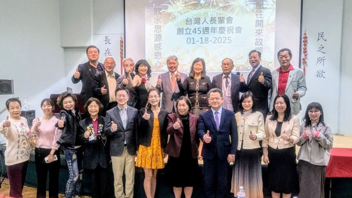 (記者林蓮華/洛杉磯報導)TASA南加州台灣人長輩會在2025年1月18日(周六)於大洛杉磯台灣會館舉辦「45週年慶祝會暨新年慶生月例會」,以「繼往開來故鄉情、飲水思源感恩心」做為年會主題;當天駐洛杉磯經文處長紀欽耀除肯定台灣人長輩會愛台灣長年的付出之外,率先宣佈將代表外交部因大洛杉野火捐贈50萬美元給「洛杉磯消防基金會」(LAFD Foundation)購買消防設備,並宣佈1月21日(周二)該處將喬遷新址;洛僑中心新上任的鍾佩珍主任也甫從台灣抵達就任,表示非常榮幸首次亮相參加的第一個社團,就是南加州台美社團先驅的台灣人長輩會,並向長輩拜年賀新春。