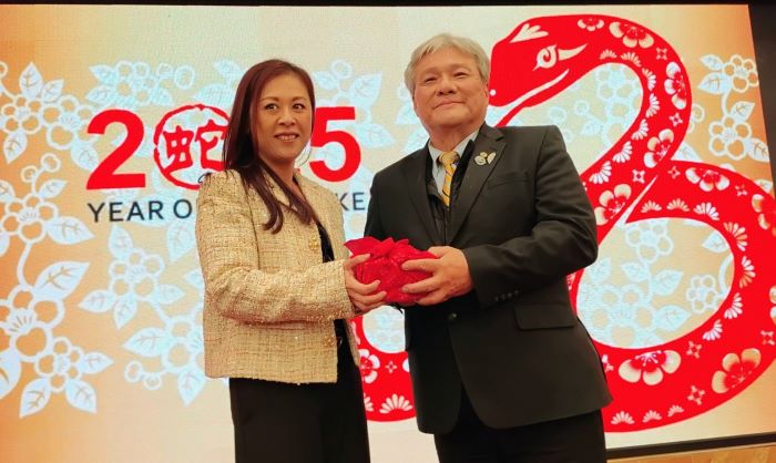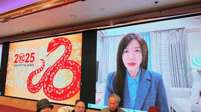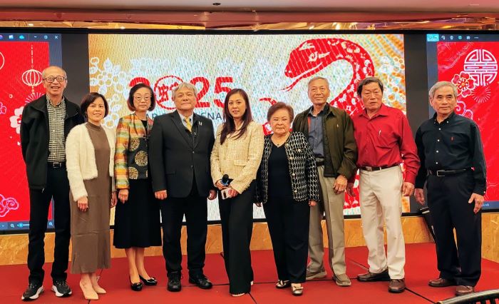 (記者林蓮華/洛杉磯報導)洛杉磯聖東台灣同鄉會於2025年2月1日(周六)在888海鮮酒家開席,舉辦新春年會暨新舊會長交接儀式,由滿任會長楊悅英交棒給新任會長曾英銘,200多位同鄉齊集一堂,熱鬧歡度新春佳節。原本特別嘉賓兩位民進黨新晉立法委員高雄黃捷、台北吳沛憶預計來美演講,但因為要在立法院固守之前藍白兩黨以多數暴力通過的選罷法加嚴版條文等法案,失約無法來美,代替以影片播出,她們呼籲鄉親多多支持罷免,以利導正國會亂象。