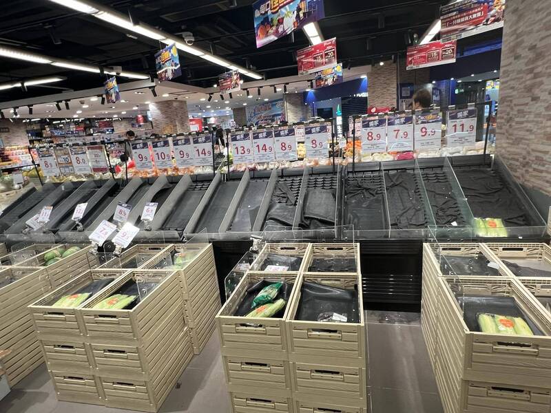 不少網友在社交平台分享超市出現的驚人情況,一些菜架、肉架、麵包、泡麵及瓶裝水均成為搶貨目標,多區貨架簡直像清倉,連較昂貴的有機菜也被搶光:「$27(約新台幣106元)包有機菜都好多人買。」與此同時,超市付款處也大排長龍,排隊結帳等了半小時。有網友形容「香港人的防風能力真是不可輕視、好癲、好誇張。」