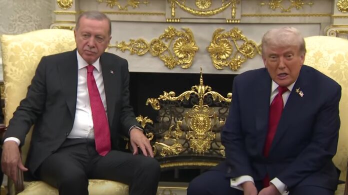 川普(Donald Trump)今天在白宮橢圓形辦公室與來訪的艾爾段(Recep Tayyip Erdogan)舉行雙邊會,兩人於會前接受媒體訪問。美聯社報導,這是艾爾段自2019年以來,再度造訪白宮。