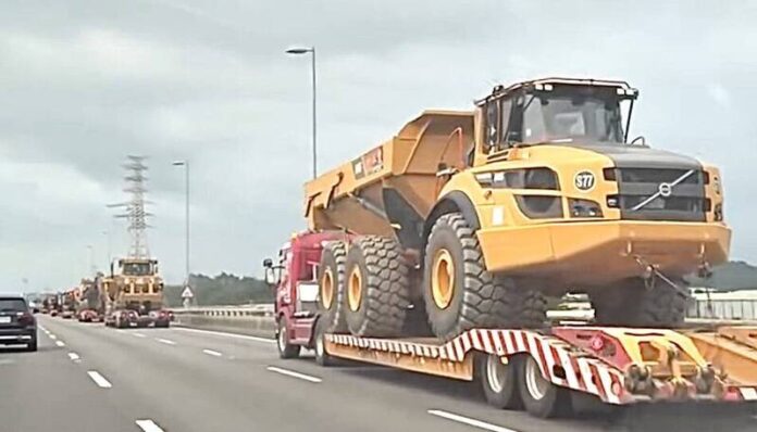 網友感動拍下「重機械超人團」(工程礦卡),車隊行經國一趕路氣勢震撼畫面,業者表示,27日晚間出發,徹夜行經南迴公路,再經由台東北上挺進光復鄉,28日上午抵達當地投入救災。