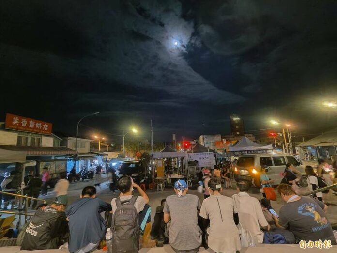 花蓮縣光復鄉的中秋夜,月亮跟其他地方一樣皎潔,但多數家戶為清理家園已忙了10多天,實在沒好心情賞月,反而車站前不少超人刻意停留,欣賞異鄉月圓。