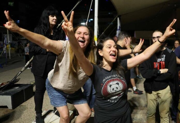 在以色列特拉維夫的「人質廣場」,長久以來在此為親人守夜的家屬們爆發出歡呼。人質馬坦(Matan)的母親艾納芙(Einav Zaugauker)在慶祝的紅色信號彈光芒中,喜極而泣地說:「我無法呼吸…我無法解釋我的感受…這太瘋狂了。」自由時報1009