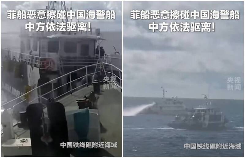 中國和菲律賓又於南海爭議海域發生衝突,昨天(12日)一艘中國海警船在南沙群島中業群礁鐵線礁附近對菲律賓公務船發射水砲,並蓄意衝撞菲船。中共官媒《央視》今天(13日)反咬是菲船「惡意擦碰」中方船隻,中方是「依法驅離」。