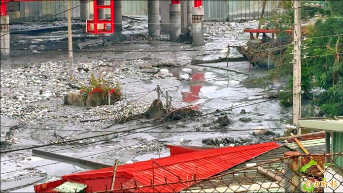 明利村受災的羅先生說,自己先到花蓮市找親友避難,看到電視拍到自己家被大水淹沒,門都沒有了。