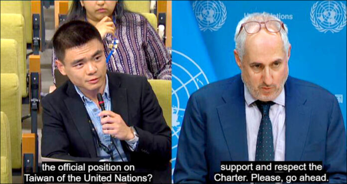 中國央視記者在聯合國記者會上對台灣地位數度追問,但遭聯合國秘書長發言人杜加里克以「不知道大會文本有變化」,不願加以背書。