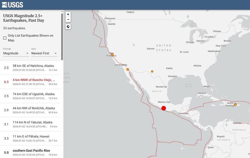 Home即時新聞墨西哥首都規模6.5強震 總統記者會被迫中斷 即時新聞國際新聞 墨西哥首都規模6.5強震 總統記者會被迫中斷 Share FacebookLINE 墨西哥首都墨西哥市發生規模6.5地震。 墨西哥國家地震監測機構表示,首都墨西哥市今天發生規模6.5強震。地牛翻身後,墨西哥市各地均有震感。 法新社報導,地震來襲時,墨西哥總統薛恩鮑姆(Claudia Sheinbaum)的每日例行記者會被迫中斷。自由時報0102 Facebook Comments Box Share FacebookLINE Previous article天高海闊-高盛集團預期美國經濟蓬勃 共和黨主政九州降個人所得稅 0102Next article高市早苗與川普熱線 可能談及中國環台軍演 editor 相關新聞 即時新聞 柯文哲密會柯建銘:總預算該處理就要處理 2026-01-02 即時新聞 總統府發布總統令 陳建仁為第13任中研院院長 2026-01-02 即時新聞 胡振東酸鼓吹投降媒體:他們拿了中國的錢 2026-01-02 - Advertisment - 相關分類 新聞大破解-三座大山壓垮中國中產階級!社會底層生存焦慮將出陳勝吳廣 0102 2026-01-02 鏡轉全球-伊朗抗爭遍地開花 0102 2026-01-02 柯文哲密會柯建銘:總預算該處理就要處理 2026-01-02 總統府發布總統令 陳建仁為第13任中研院院長 2026-01-02