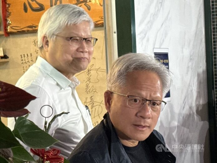 輝達(NVIDIA)執行長黃仁勳今晚在台北市私廚「鄒記食舖」,與台積電董事長魏哲家及高階主管、輝達團隊共進晚餐約3小時,他走出餐廳向媒體表示,來台北的第一餐總是跟魏哲家一起吃晚餐,並大讚氣氛很棒。