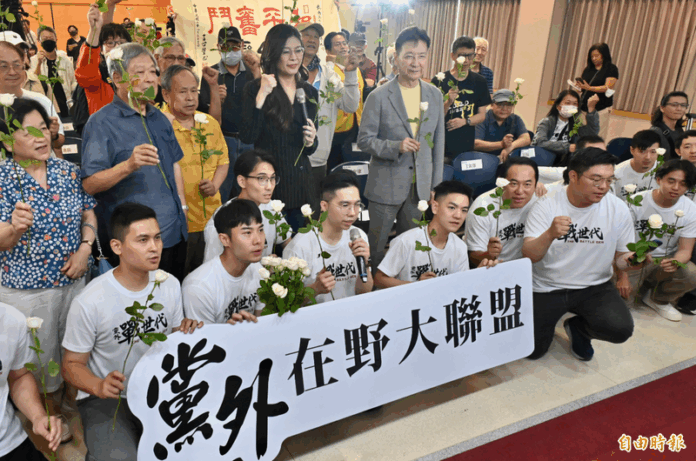 由前交通部長葉匡時、前行政院發言人孫立群、馬英九基金會執行長蕭旭岑等馬政府時期官員,以及北一女教師區桂芝、網紅「館長」陳之漢、前立委郭正亮、學者馮建三、廖元豪、施正鋒等人擔任發起人的「黨外在野大聯盟」,今天正式成立,國民黨「戰鬥藍」發起人趙少康、藍委陳玉珍、游顥、鄭正鈐、林德福、牛煦庭、賴士葆、馬文君、無黨籍立委高金素梅、白委張啓楷、麥玉珍等人都到場聲援。