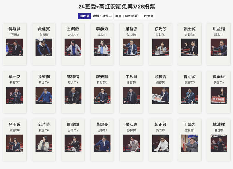 中選會昨宣告傅崐萁等24件國民黨立委,以及停職中的新竹市長高虹安罷免案成案,並決議於今年7月26日投票。本報整理二階罷免連署查對數據,有9成罷免案合格率達80%以上,其中徐巧芯案在連署正確率及合格連署達成率皆奪下冠軍;此外,有6件藍委罷免案繳出0死亡連署、0偽造的好成績。