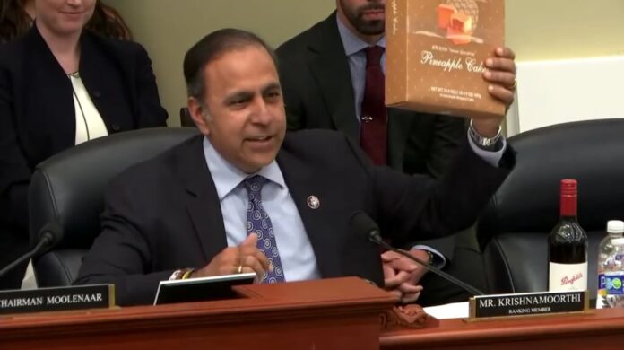 美國聯邦眾議院一個跨黨派的委員會今天舉行聽證會討論中國經濟脅迫,民主黨議員克利什納穆希表示,若華府攜手澳洲、日本及台灣等朋友團結合作,就能抗中脅迫。他並秀出來自台灣的「自由鳳梨酥」。