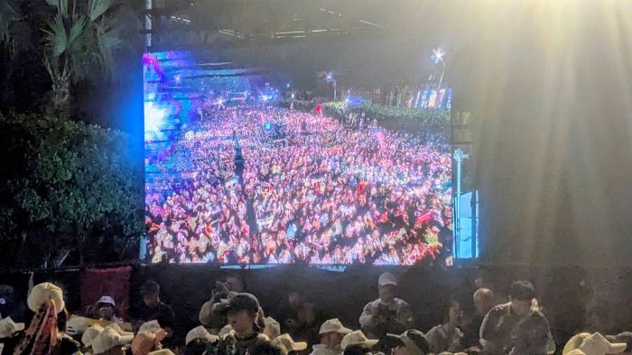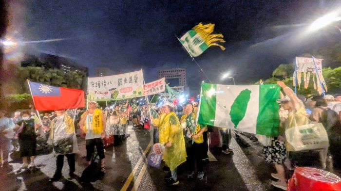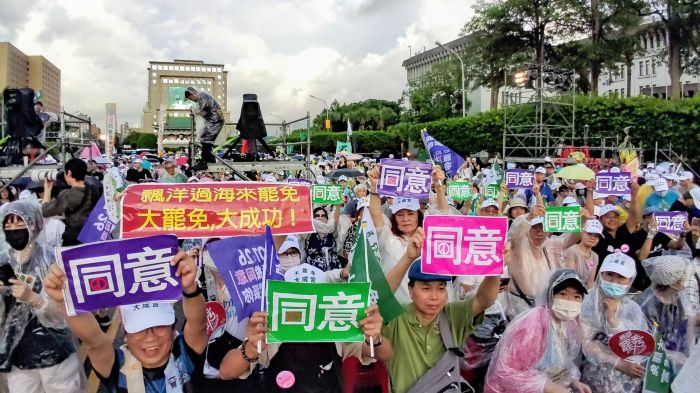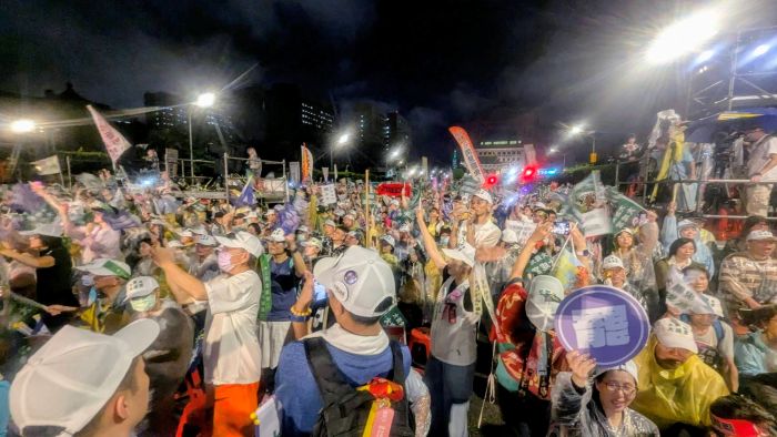 儘管台北下午4點就開始大雨不斷,但仍擋不住熱情民眾自發前來支持,晚間 9 點現場人潮突破10萬人,人群不僅占滿凱道核心,更延伸至景福門廣場周圍,密密麻麻萬頭鑽動,其間口號「大霸免、大成功」如通關秘語,處處有回應,貫穿活動前後,響徹雲霄久久不散。