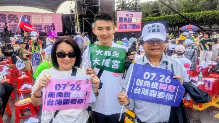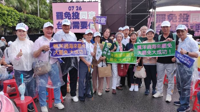 (記者林蓮華/台北報導)首波罷免投票2025年7月26日最後衝刺,由反共護台志工聯盟於7月24日(週四)總統府前凱達格蘭大道舉辦「罷免投同意、台灣靠自己」造勢晚會,儘管當晚滂沱大雨,仍然湧入超過十萬名熱情民眾,現場旗海飄揚,口號人聲鼎沸,呼籲大家拉票「同意罷免」還我愛台護民的立法院;其間非常醒目的標語「飄洋過海來罷免」彰顯海外人士以實際行動回台投票,捍衛主權,絕不讓中國外力滲透台灣國會。