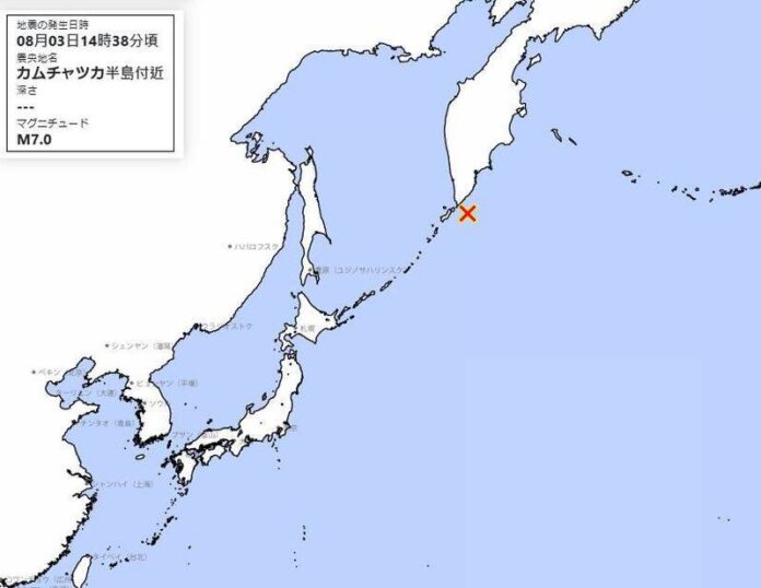 根據日本氣象廳觀測顯示,台灣時間3日下午1點38分俄羅斯堪察加半島近海發生規模7.0地震,震央位於北庫里爾斯克(Severo-Kuril’sk)東約118公里海面上,震央深度35公里,為上月30日規模8.8強震後最大餘震。