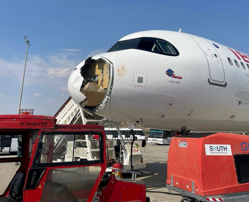 據航空媒體《Aviacionline》報導,IB579航班當天從馬德里阿道弗·蘇亞雷斯馬德里-巴拉哈斯機場出發,孰料才剛起飛幾分鐘左右就遭到鳥擊,使得機頭和1顆引擎受損。
