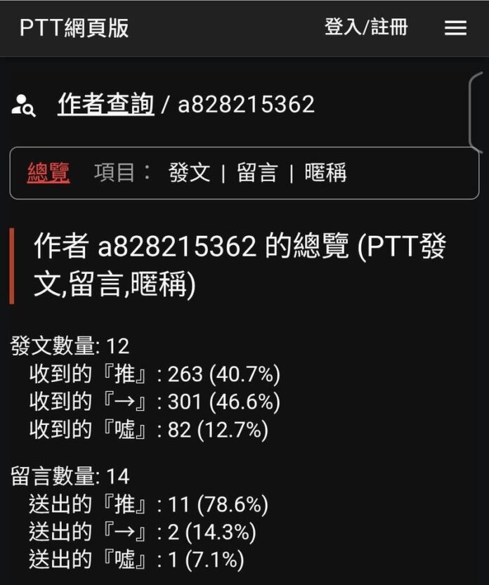 資安人士指出,近年常出現代理人帳號操作議題的相關社群如PTT,這次也被發現有多組異常帳號協力情形,例如帳號「a828215362」2015年啟用至今,10年來僅發表12篇文章,其中10篇是在今年7月30日後發表,轉貼附和特定政黨敘事,以及攻擊執政黨的新聞,其中就包含5日中時的上述報導。