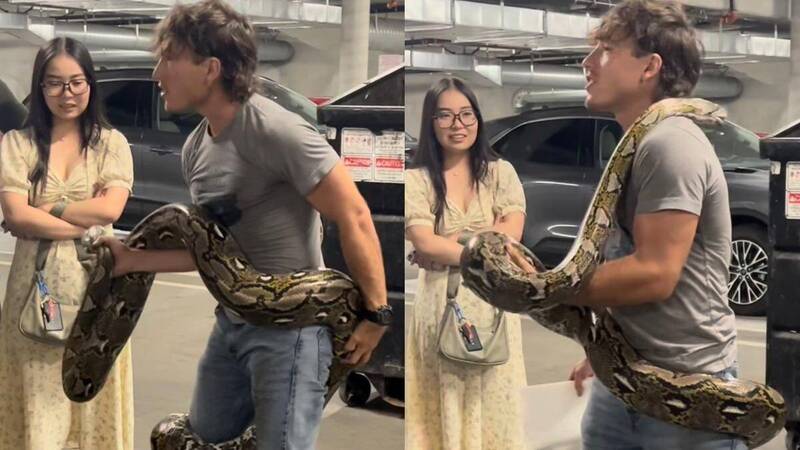 洛杉磯一處公寓大樓附近,住戶驚見一條長約6公尺(20英尺)的巨蟒在垃圾桶中出沒,嚇得不知所措。24歲的爬蟲類馴獸師瑟夫·哈特(Joseph Hart)徒手攀入垃圾桶,冷靜捕獲這條巨蛇。