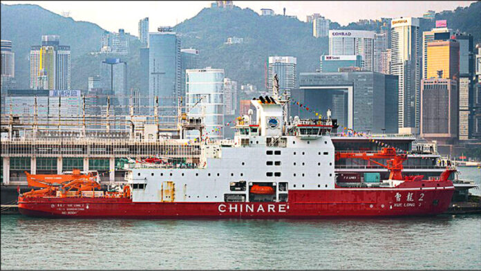 中國近年積極進入北極,引發美國憂慮。月初,中國由最新世代破冰船「雪龍二號」領銜,搭載深海潛水器的「深海一號」、科考船「探索三號」、「中山大學極地號」及「極地號」組成的五艘極地船隊,五至七日穿越白令海峽,在北極海活動。