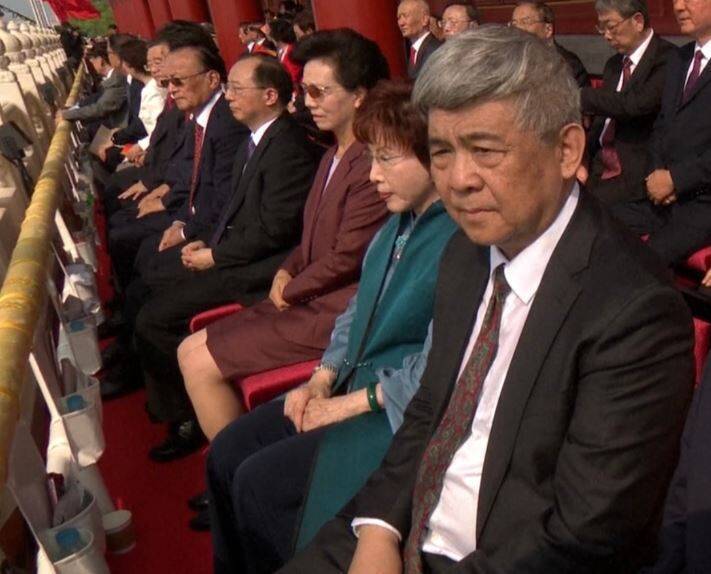 國民黨前主席洪秀柱於今出席中國九三閱兵,中國官媒曝光洪秀柱現身北京天安門城樓畫面,現場畫面顯示,洪秀柱身穿綠衣黑褲現身天安門城樓觀禮,座位也相當靠前,站在日前有彭帥性醜聞的中國國務院前副總理張高麗後面。