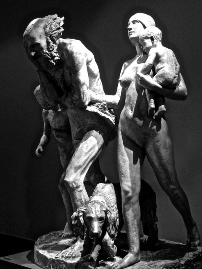 幾年前,一本藝術雜誌上的一張彫塑照片吸引了我,當時不知道作品有沒有特殊名稱,我自己稱 “它”為「滄桑歲月」(圖一)。彫像中,一對遲暮的男女老伴,相互偎依,走過世紀,接近尾聲,默然無語。那種無奈人生引燃的淒美意境,深深地感動了我。