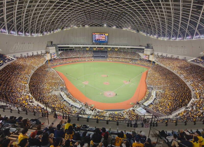 台灣的六支職棒隊,規模遠遠不如日本球團。圖為今年台灣大賽兄弟對統一滿場球迷進場觀賽。(記者王藝菘攝)