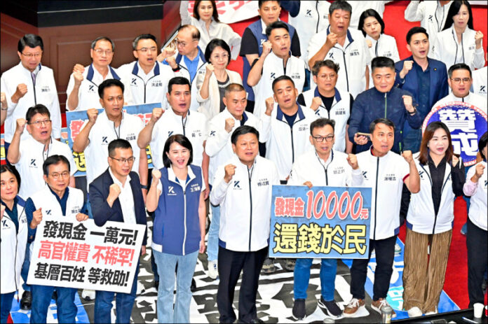立法院七月十一日三讀通過韌性特別條例,匡列二三五○億元普發萬元現金,行政院第一時間的回應,並未搬出憲法與預算法,也未提一貫的「合法合憲救濟」,僅稱「舉債普發現金將債留子孫」,當時就被解讀,行政院是唯恐影響大罷免投票。