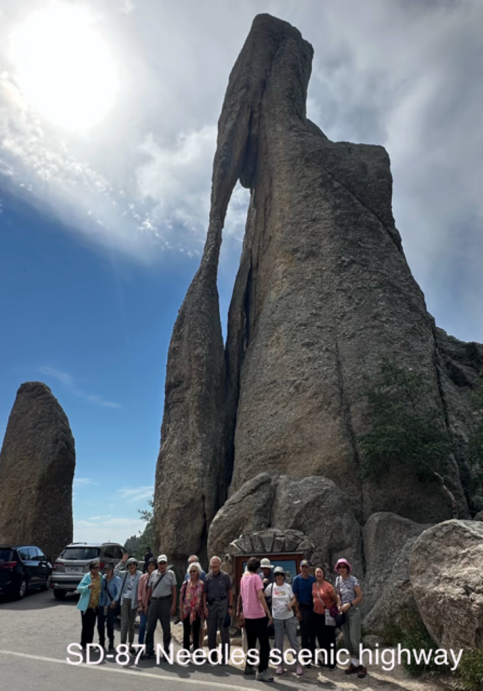 午餐過後,驅車前往美國 South Dakota 鼎鼎有名的 Needles Scenic Highway SD-87 賞景𨑨迌,這彎彎曲曲、環繞 Black Hill 山體、上上下下的公路,雖然長度僅有 14 miles ,然而漫山奇石嶙峋,與高聳的Ponderosa松樹林群,交錯有致,鋪陳出幅幅别緻的勝景,不僅驚奇連連,更是賞心悅目。