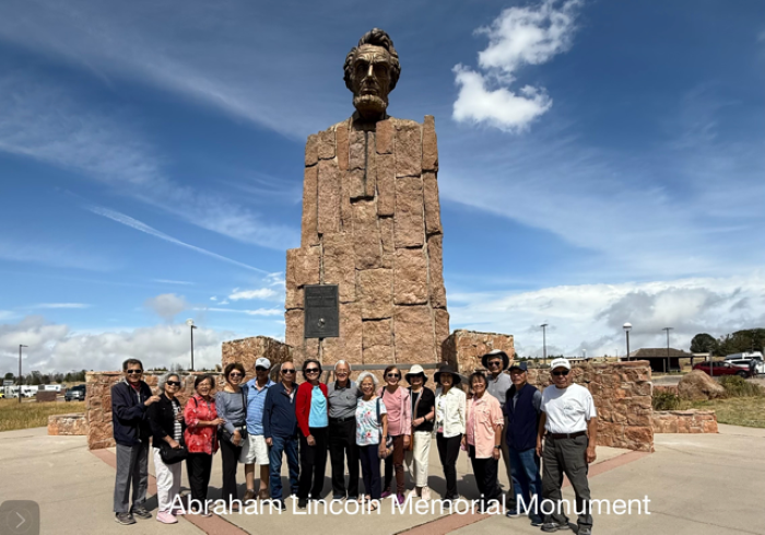 我們十八位老人,又花了一個多小時,沿著總統步道(President’s trail) 散步漫行,也不時從黃松樹(Ponderosa pine) 間隙中,仰望高崗上這四位美國總統的巨大石雕,敬仰之情,油然而生。有人發現到在 Thomas Jefferson 雕像頭部,居然還雕有眼鏡框的痕跡。在這四位偉大的美國前總統石雕山腳下,我們整整步行了一、兩小時,居然有人邊走邊討論這位「德裔美人」的美國現任總統川普(Trump) ,以及台灣總統賴清德兩人的施政優劣,如此𨑨迌兼政論,會不會有些唐突?